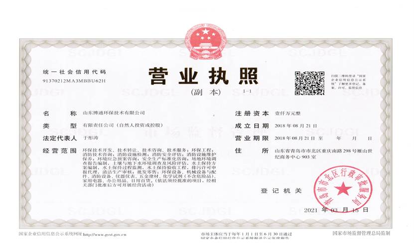 山東博通環(huán)保技術(shù)有限公司是一家專業(yè)從事環(huán)保、安全、消防的多元化技術(shù)服務(wù)公司,公司致力于打造專業(yè)的技術(shù)服務(wù)團(tuán)隊(duì),立足青島,輻射山東,服務(wù)范圍涵蓋:環(huán)保技術(shù)開發(fā)、技術(shù)轉(zhuǎn)讓、技術(shù)咨詢、技術(shù)服務(wù);環(huán)保工程;消防技術(shù)咨詢;消防設(shè)施檢測(cè);消防安全評(píng)估;消防設(shè)施維護(hù)保養(yǎng);環(huán)境應(yīng)急預(yù)案咨詢;安全生產(chǎn)標(biāo)準(zhǔn)化咨詢;場(chǎng)地環(huán)境調(diào)查報(bào)告編制,土壤與地下水環(huán)境調(diào)查及風(fēng)險(xiǎn)評(píng)估,水土保持方案編制,水土保持過(guò)程監(jiān)測(cè),水土保持驗(yàn)收工程,排污許可申報(bào)代理,清潔生產(chǎn)審核;批發(fā)零售:環(huán)保設(shè)備、機(jī)械設(shè)備與配件、消防設(shè)備、儀器儀表、五金建材、化學(xué)試劑(不含危險(xiǎn)品)。公司具有“建設(shè)手續(xù)一站式辦理,安環(huán)問(wèn)題一條龍解決”的獨(dú)特優(yōu)勢(shì),可為客戶提供高效、優(yōu)質(zhì)的安全、環(huán)保、消防管家技術(shù)服務(wù)。
